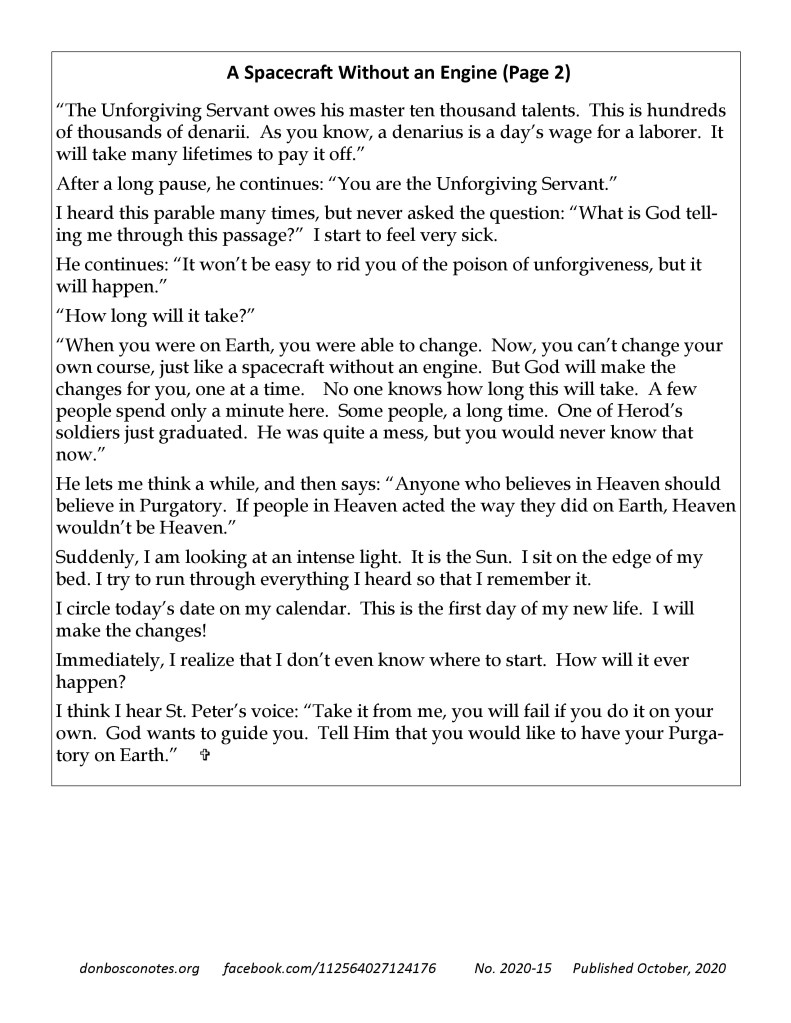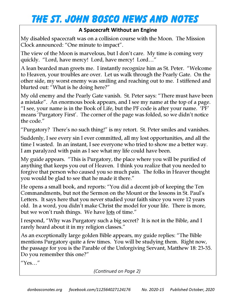“Purgatory? There’s no such thing!” is my retort. St. Peter smiles and vanishes.
