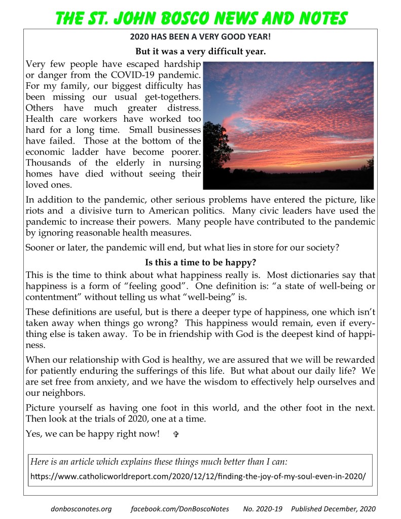 These definitions are useful, but is there a deeper type of happiness, one which isn’t taken away when things go wrong? This happiness would remain, even if everything else is taken away. To be in friendship with God is the deepest kind of happiness.