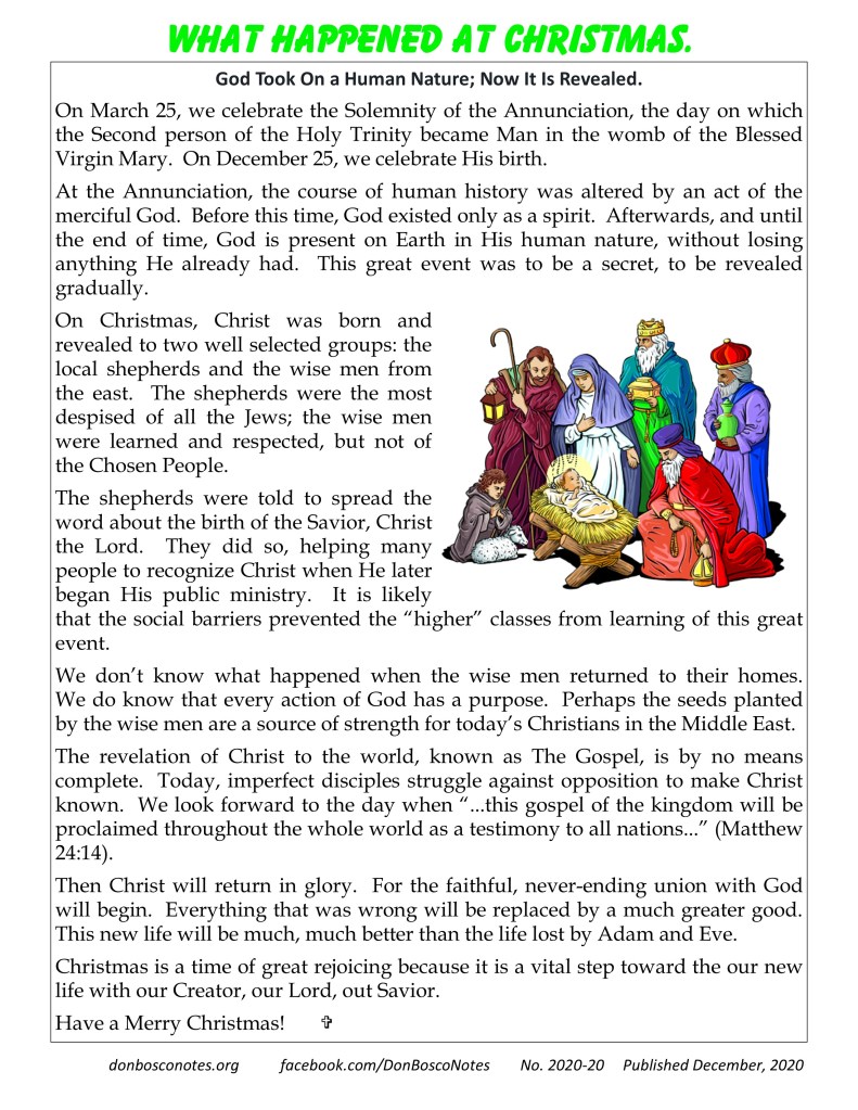 On Christmas, Christ was born and revealed to two well selected groups: the local shepherds and the wise men from the east. The shepherds were the most despised of all the Jews; the wise men were learned and respected, but not of the Chosen People.