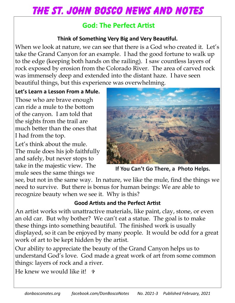 When we look at nature, we can see that there is a God who created it. Let’s take the Grand Canyon for an example. I had the good fortune to walk up to the edge (keeping both hands on the railing). I saw countless layers of rock exposed by erosion from the Colorado River. The area of carved rock was immensely deep and extended into the distant haze. I have seen beautiful things, but this experience was overwhelming.