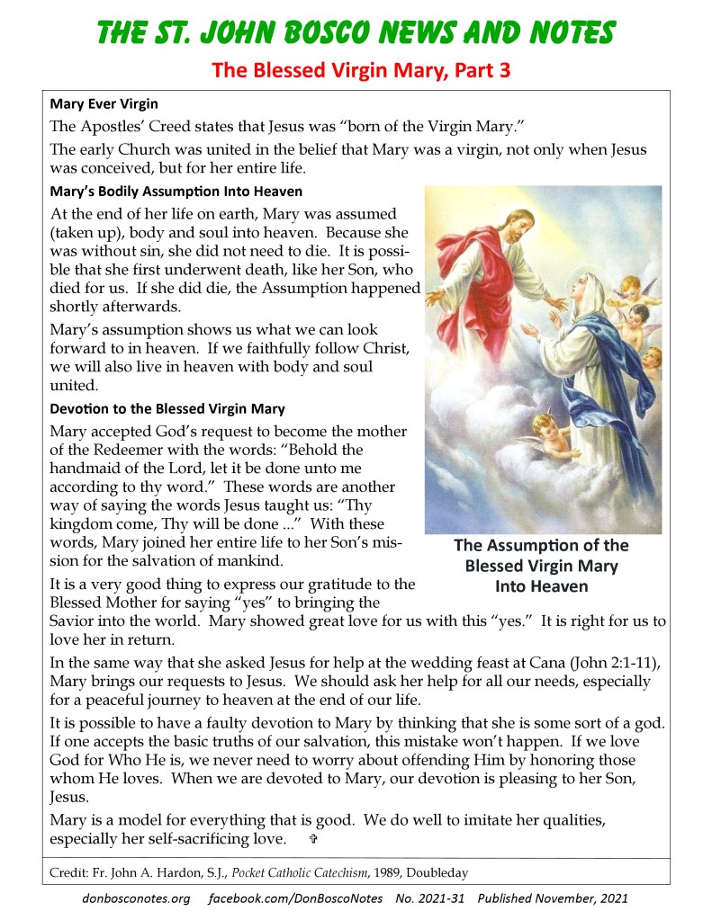 Mary’s assumption shows us what we can look forward to in heaven. If we faithfully follow Christ, we will also live in heaven with body and soul united.
