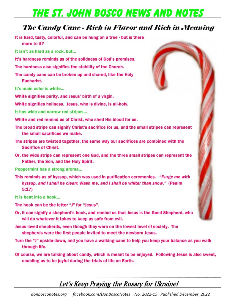 The candy cane can be broken up and shared, like the Holy Eucharist.