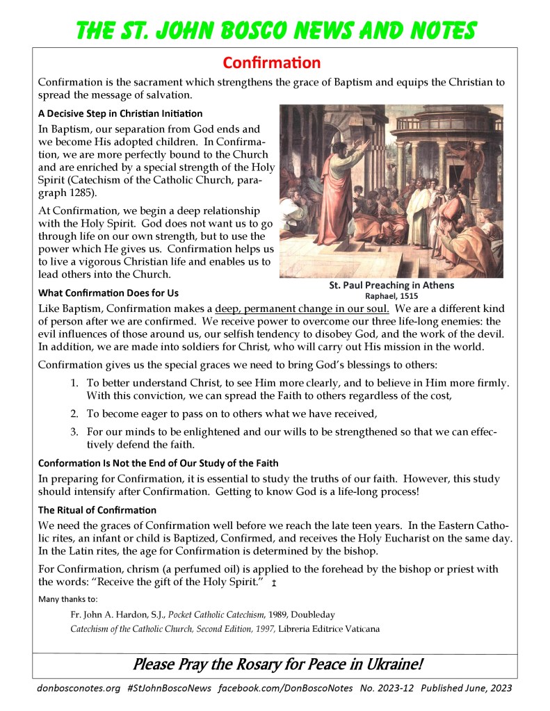 In preparing for Confirmation, it is essential to study the truths of our faith. However, this study should intensify after Confirmation. Getting to know God is a life-long process!