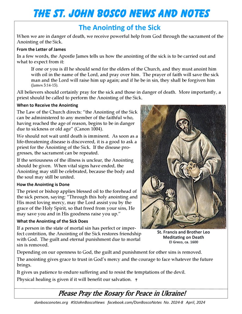 When we are in danger of death, we receive powerful help from God through the sacrament of the Anointing of the Sick.