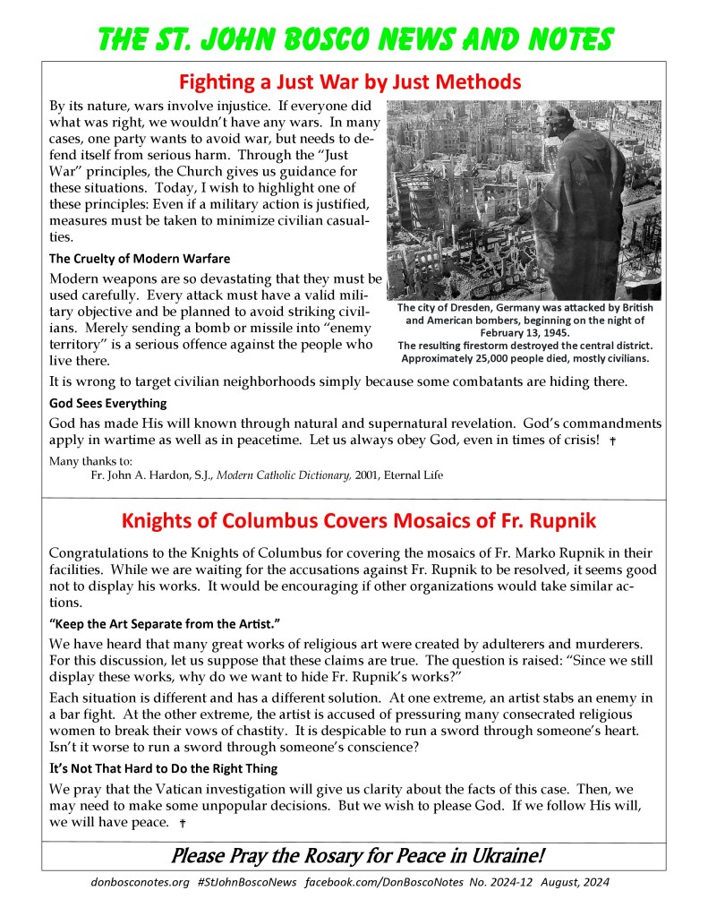 Congratulations to the Knights of Columbus for covering the mosaics of Fr. Marko Rupnik in their facilities. While we are waiting for the accusations against Fr. Rupnik to be resolved, it seems good not to display his works. It would be encouraging if other organizations would take similar actions.